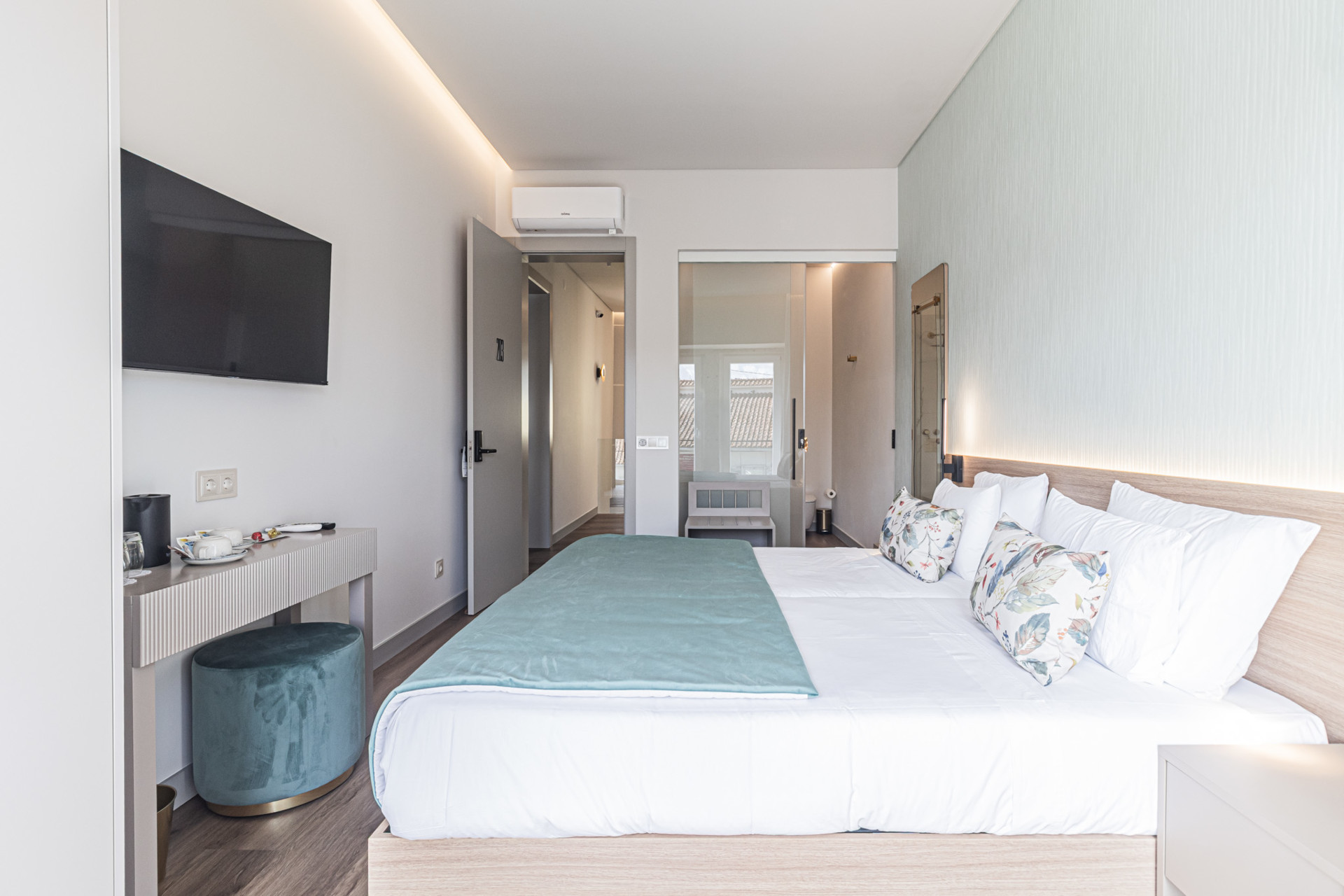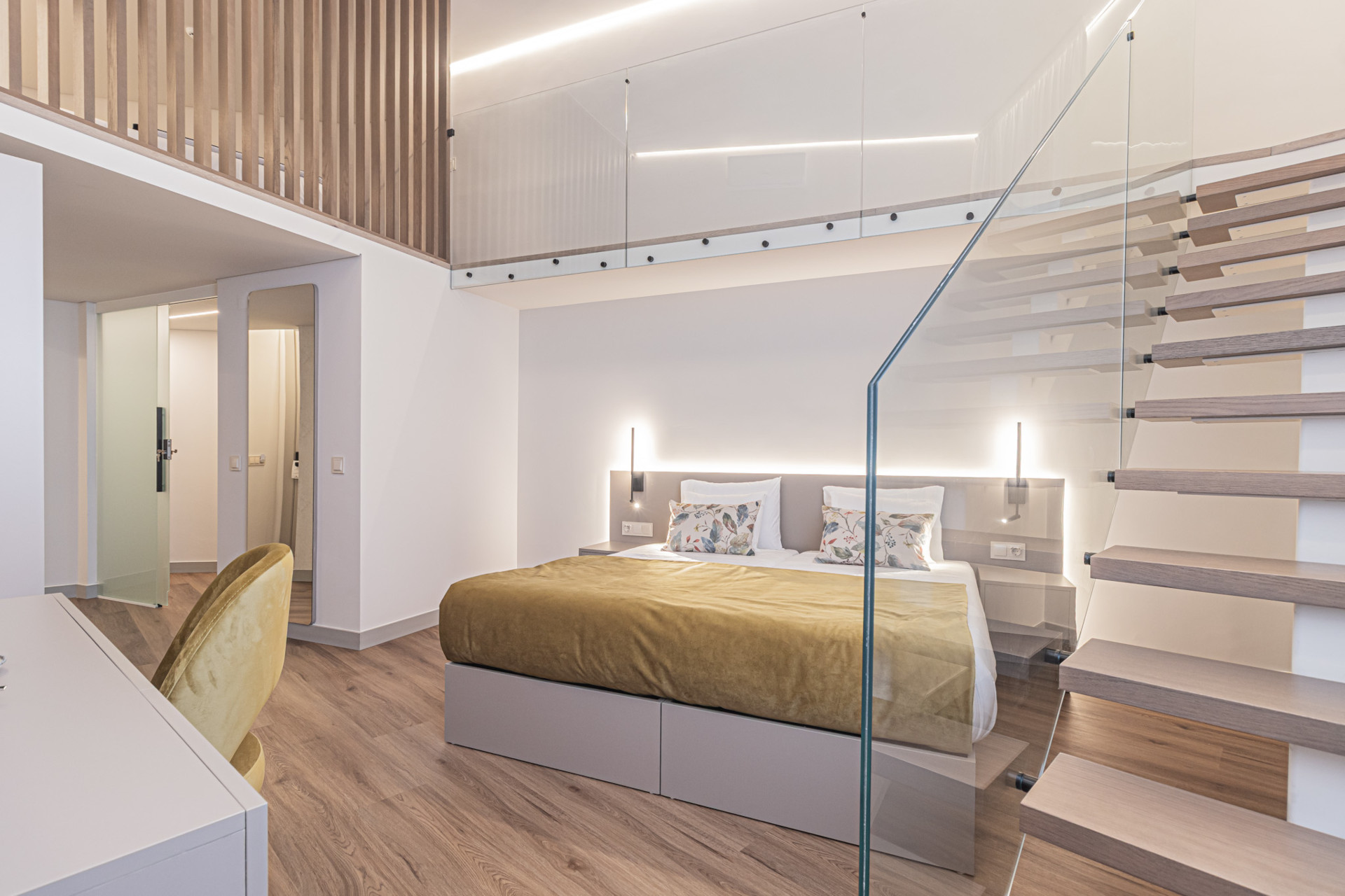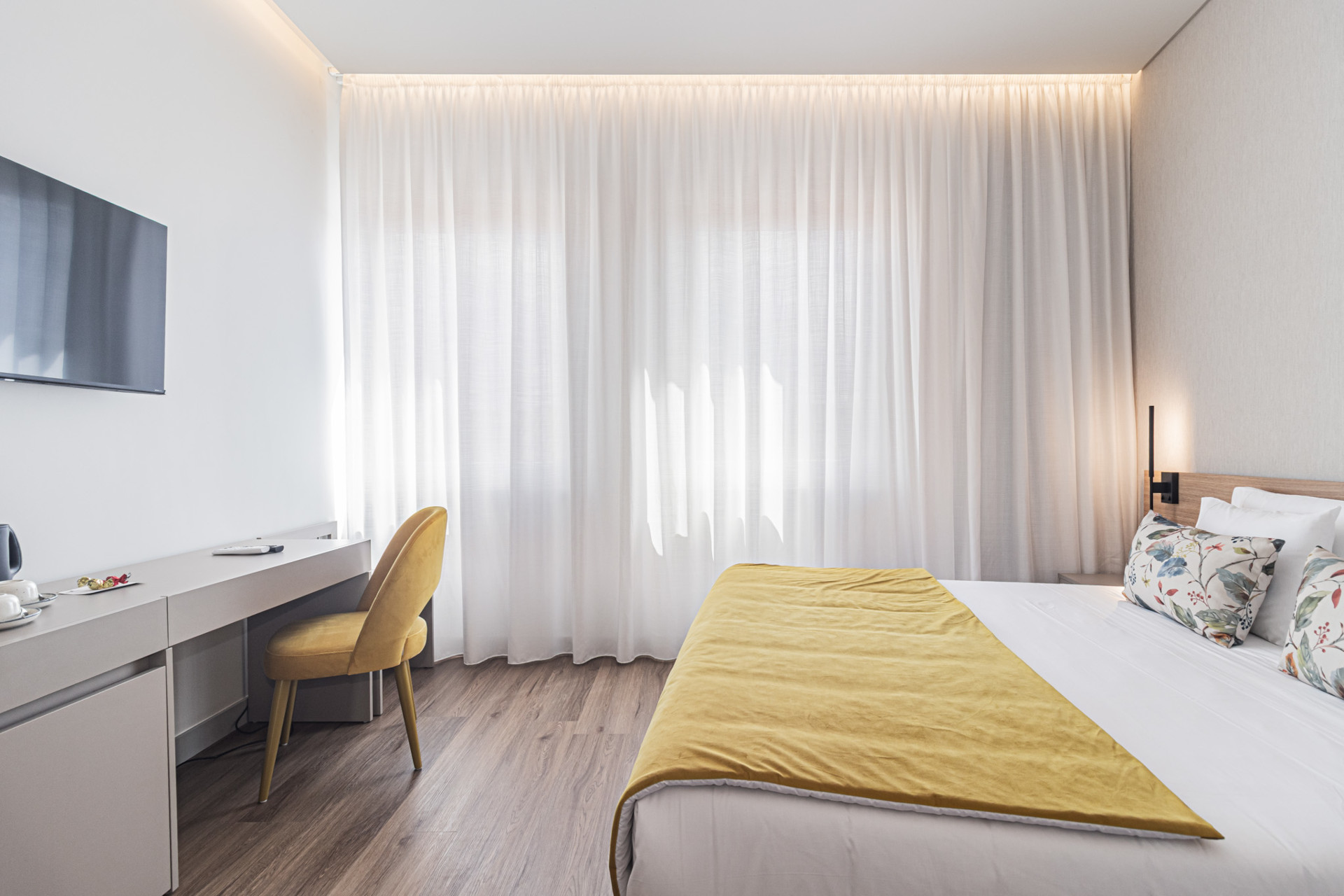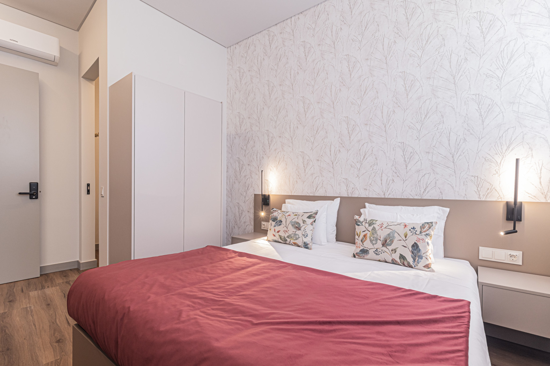 1 Quarto Duplo Executivo com varanda, muito espaçoso e com um agradável espaço exterior, ideal para momentos de descanso.