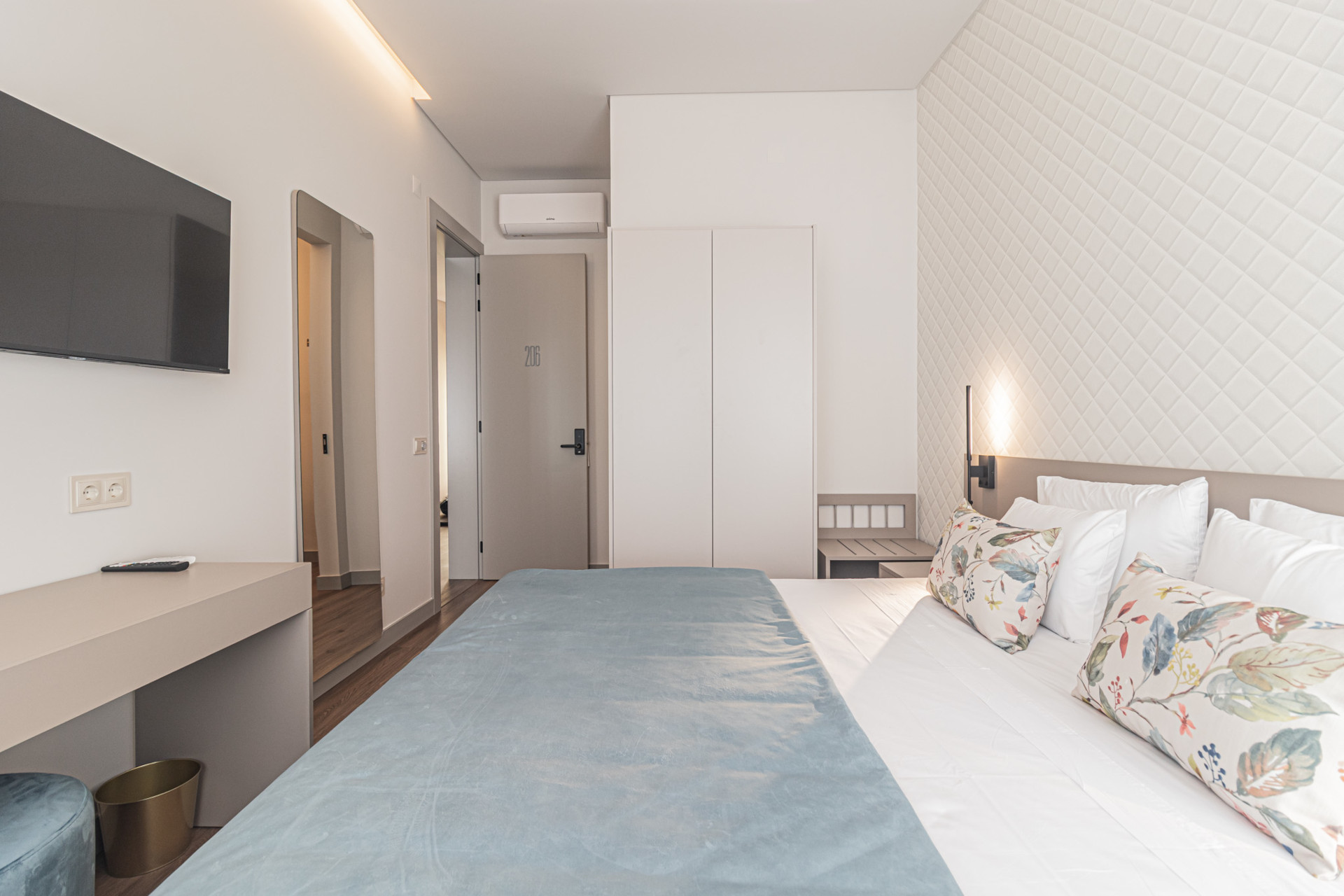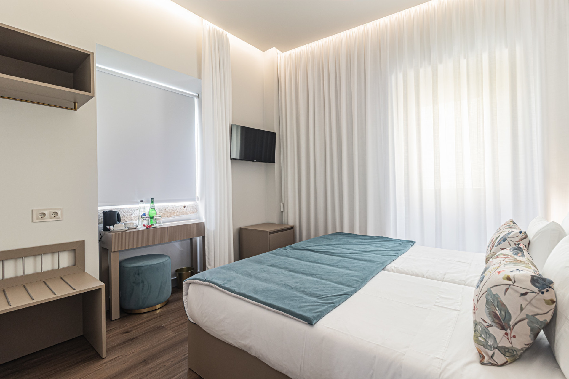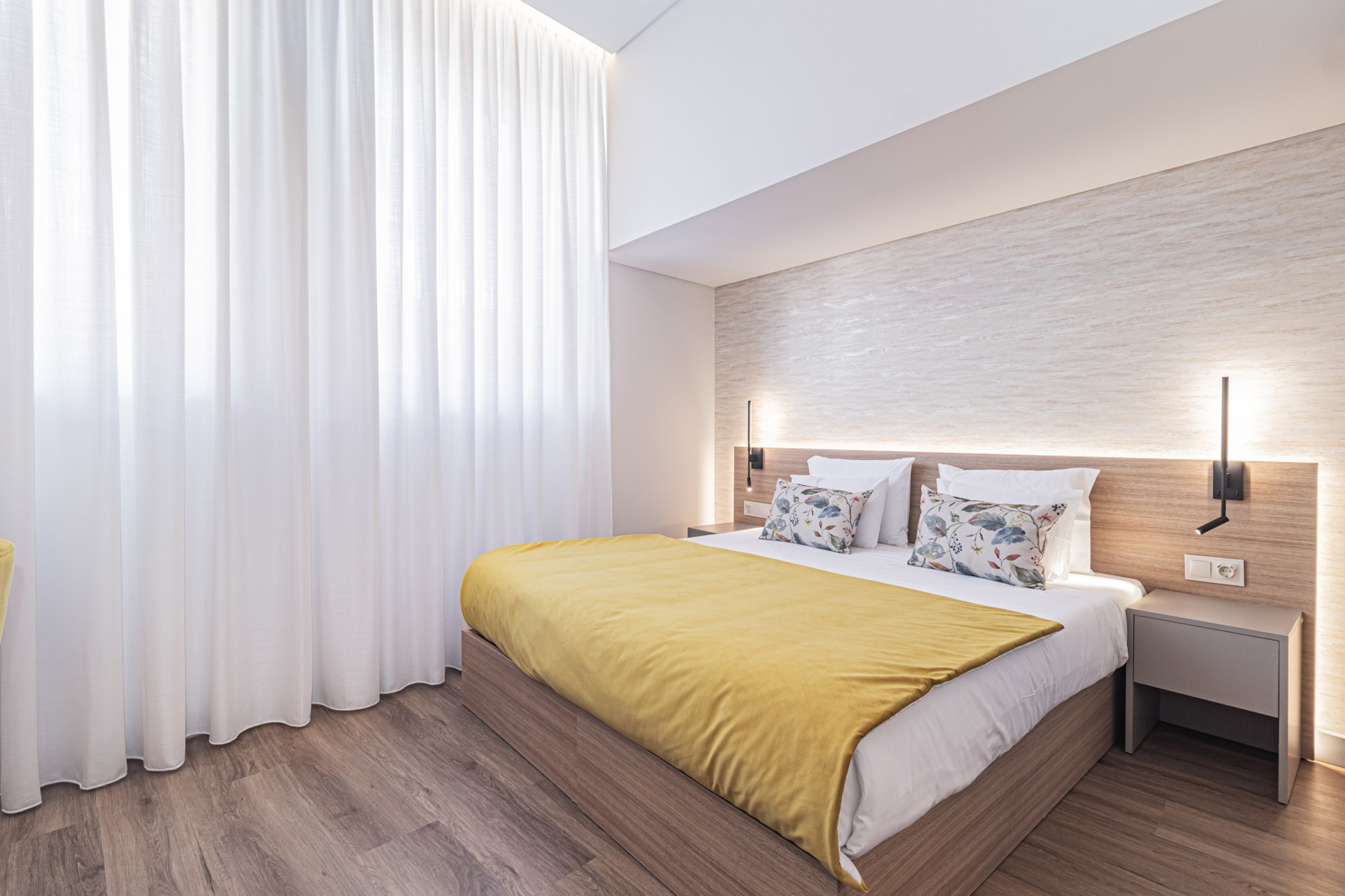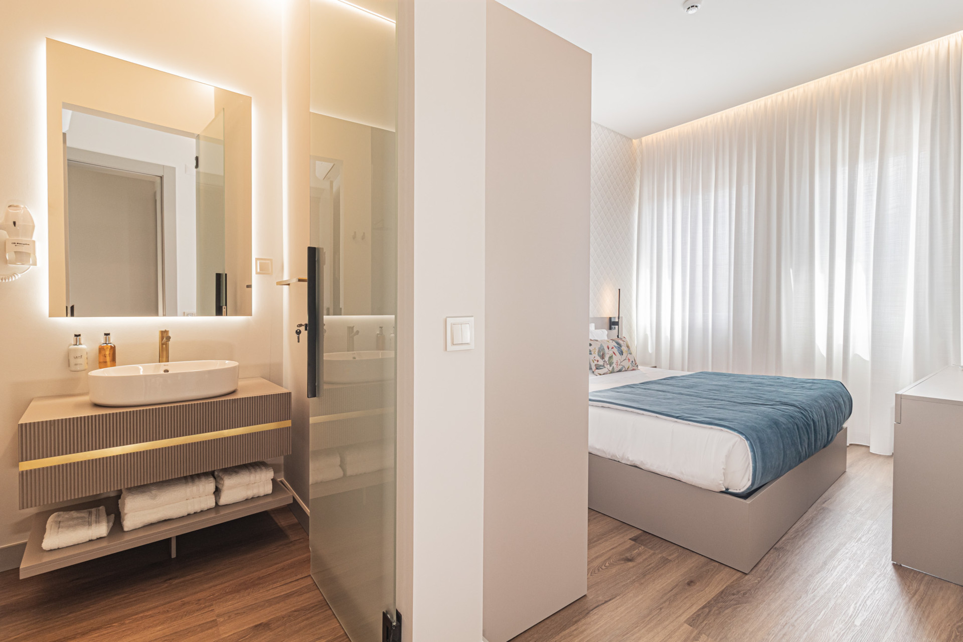 1 Quarto Duplo Executivo com varanda, muito espaçoso e com um agradável espaço exterior, ideal para momentos de descanso.