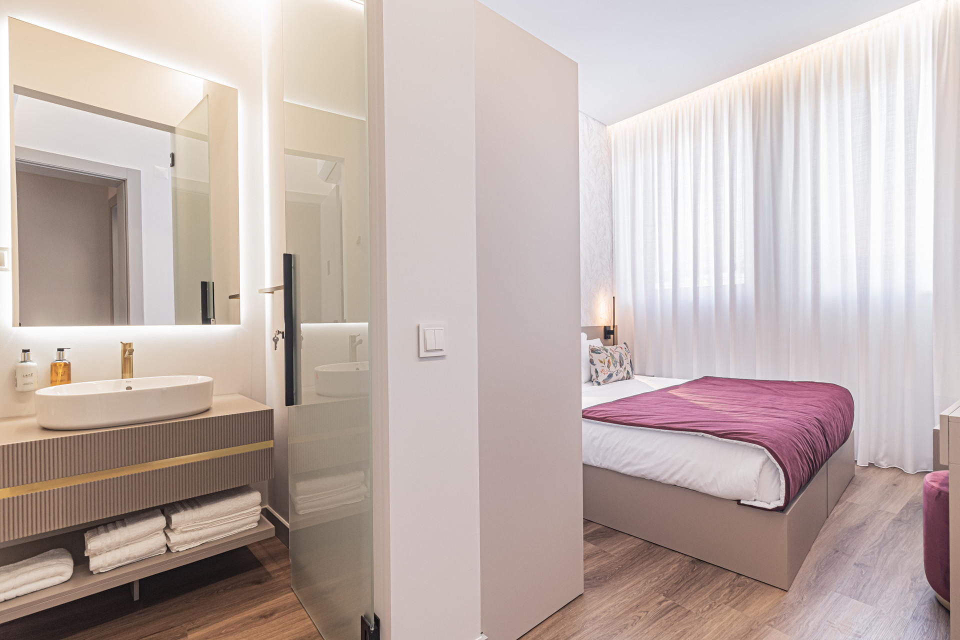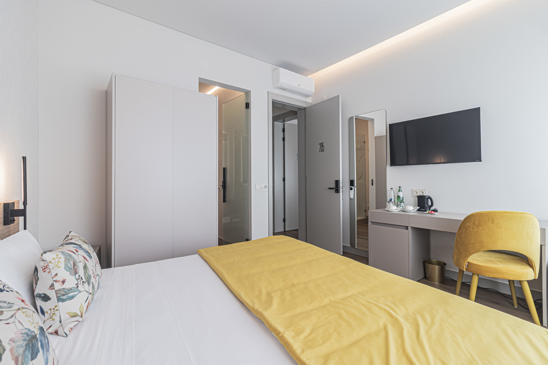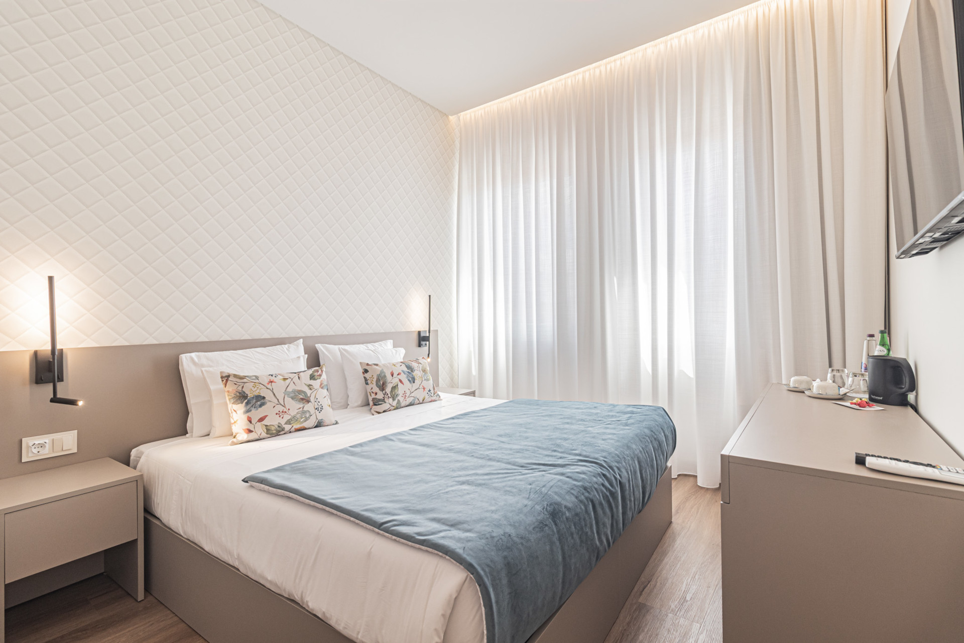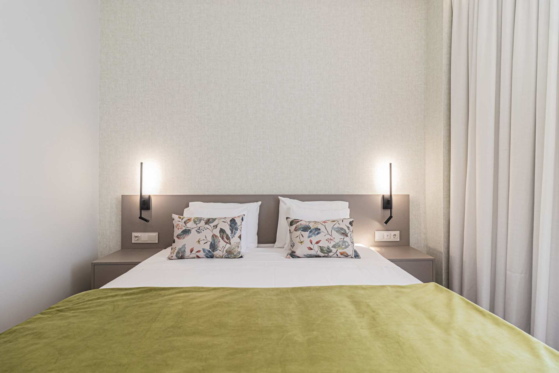 1 Quarto Duplo Executivo com varanda, muito espaçoso e com um agradável espaço exterior, ideal para momentos de descanso.