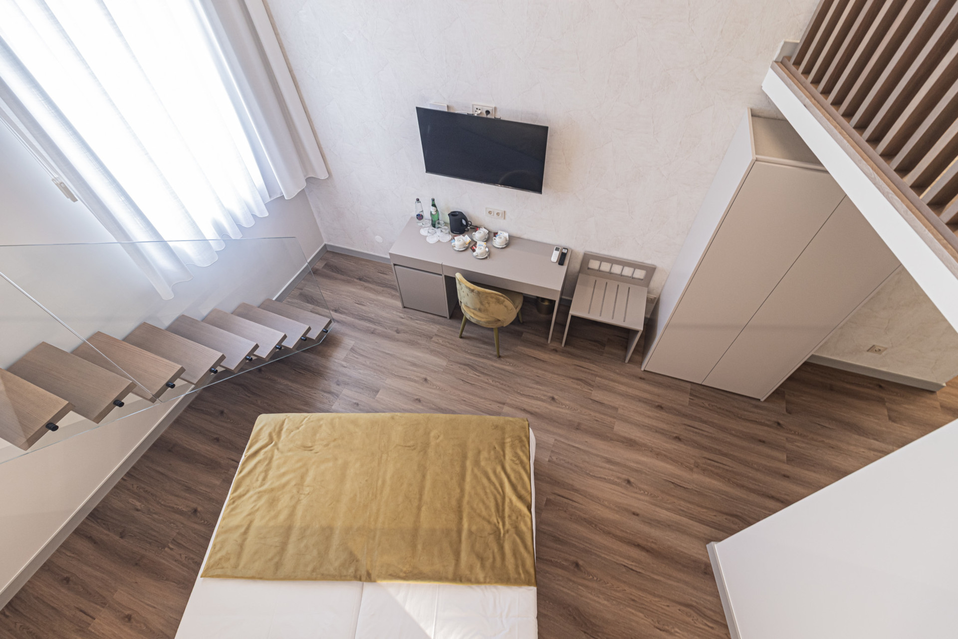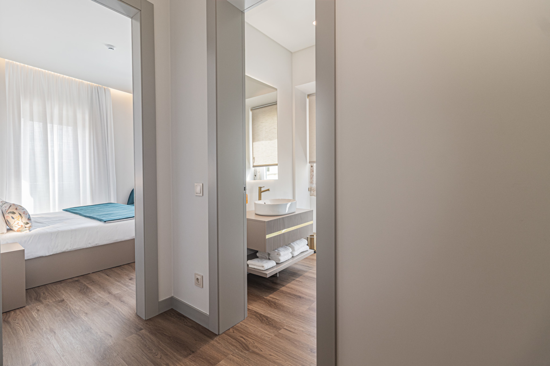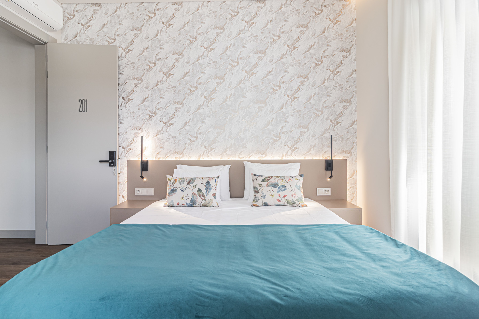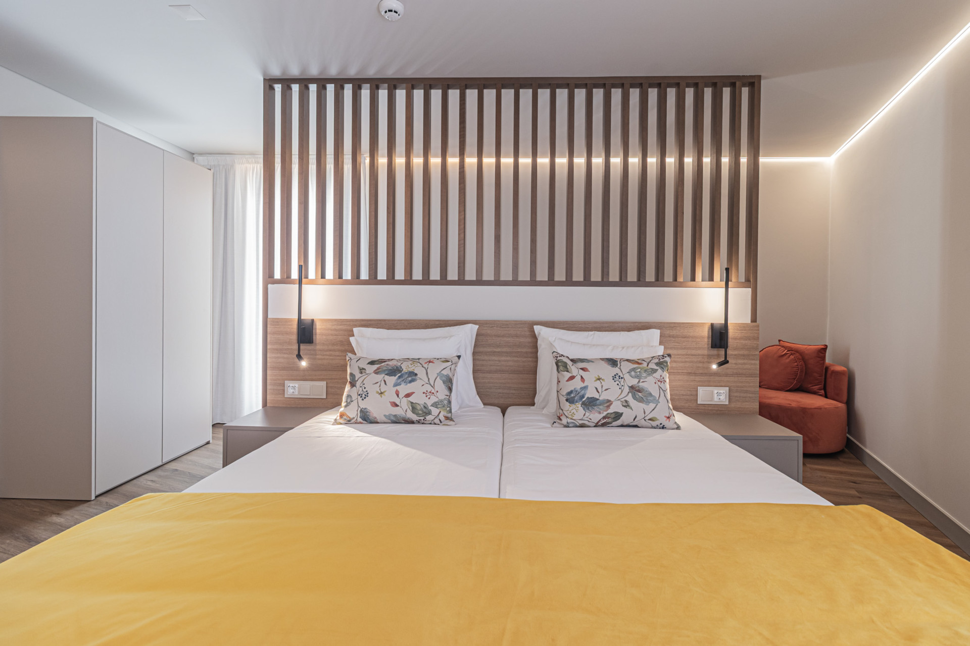 1 Quarto Duplo Executivo com varanda, muito espaçoso e com um agradável espaço exterior, ideal para momentos de descanso.